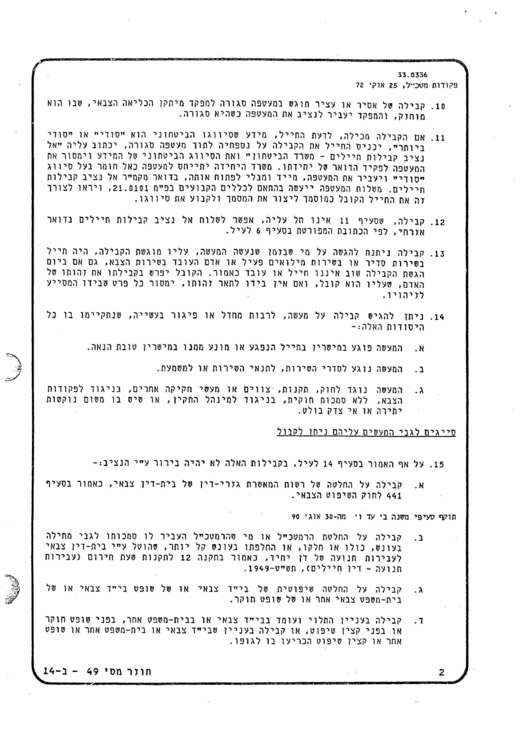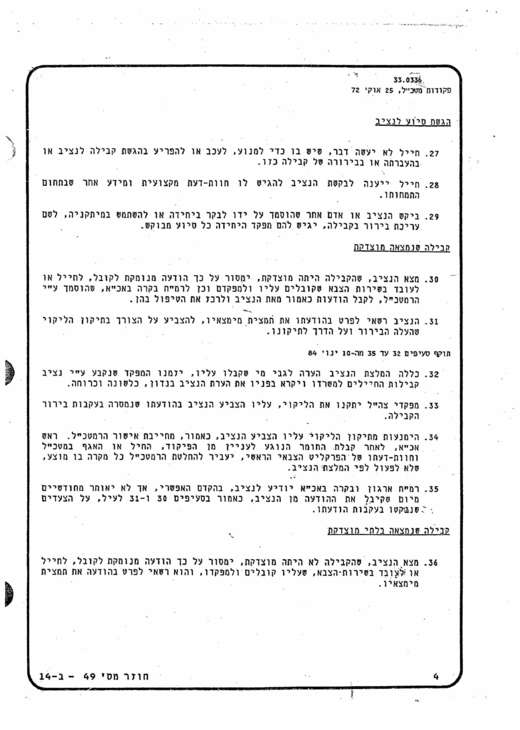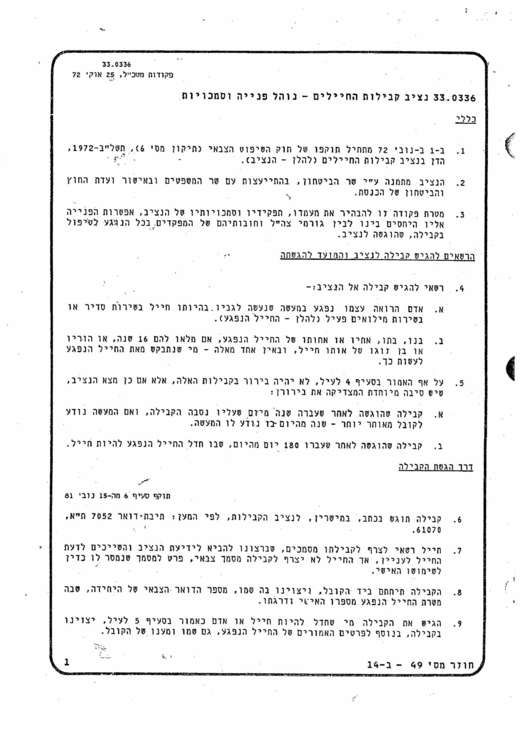 25.10.1972 – פורסמה פ"מ (פקודת מטכ"ל)33.0336 , בעניין "נציב קבילות חיילים-נוהל פנייה וסמכויות".