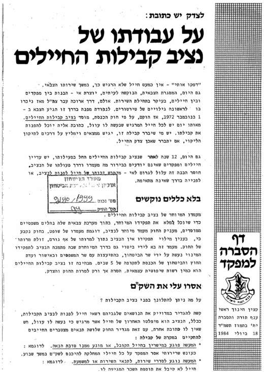 חלק יא-בירור קבילות חיילים