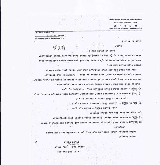 והנה תשובתו של בן-גוריון: