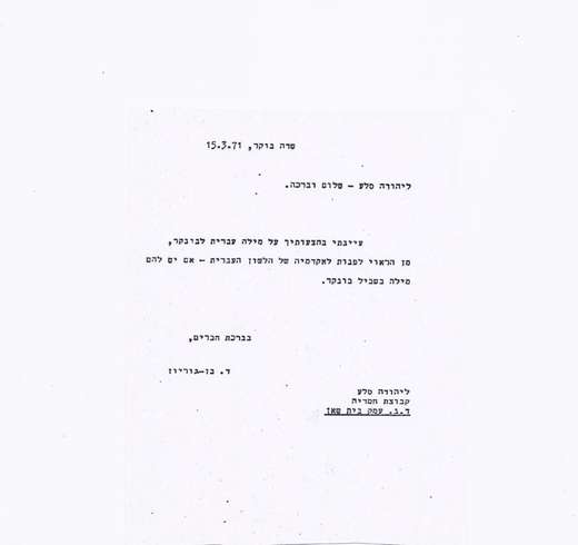 לאחרונה נתקלנו בתיקי ההתכתבויות של דוד בן גוריון שבארכיון צה"ל, בהתכתבות מעניינת שלו עם אנשים בציבור סביב השאלה: איזה שם עברי מתאים למילה "בונקר"?